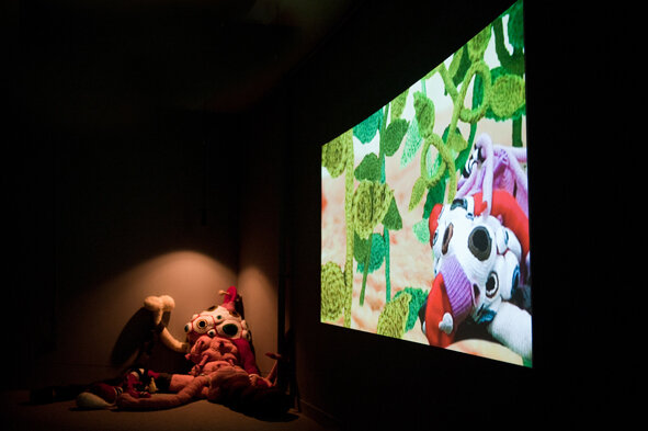Inspired by Julia Kristeva’s “the Abject” - This multilayered project ventures to reflect on the body as the primal fundamental landscape. A borderline grotesque creature played by the artist, acts within its natural habitat of a closed knitted recurrent reality from which there's no escape. This video is part of a larger constellation fusing media such as knitting, live performance, graphics,video and after effect animation.